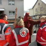 Viel zu Tun hatten die ehrenamtlichen Helfer des DRK am 9. Februar 2013 beim traditionellen Fasenachtsumzug im Ettlinger Ortsteil Schöllbronn. Insgesamt 36 Aktive aus den Bereitschaften Schöllbronn, Ettlingen, Forchheim, Neuburgweier, Malsch, Völkersbach, Spessart und Etzenrot sowie ein Arzt waren von 12.30 bis 18 Uhr mit 10 Einsatzfahrzeugen zur sanitätsdienstlichen Absicherung der Veranstaltung im Einsatz.